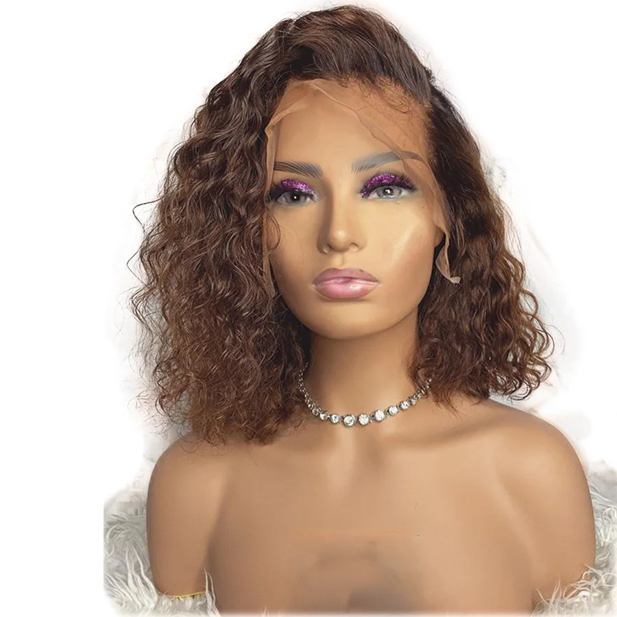 Ombre Brown Curly Brazilian Remy Human Hair Wigs Glueless 360 Lace Frontal Human Hair Wigs with Ble