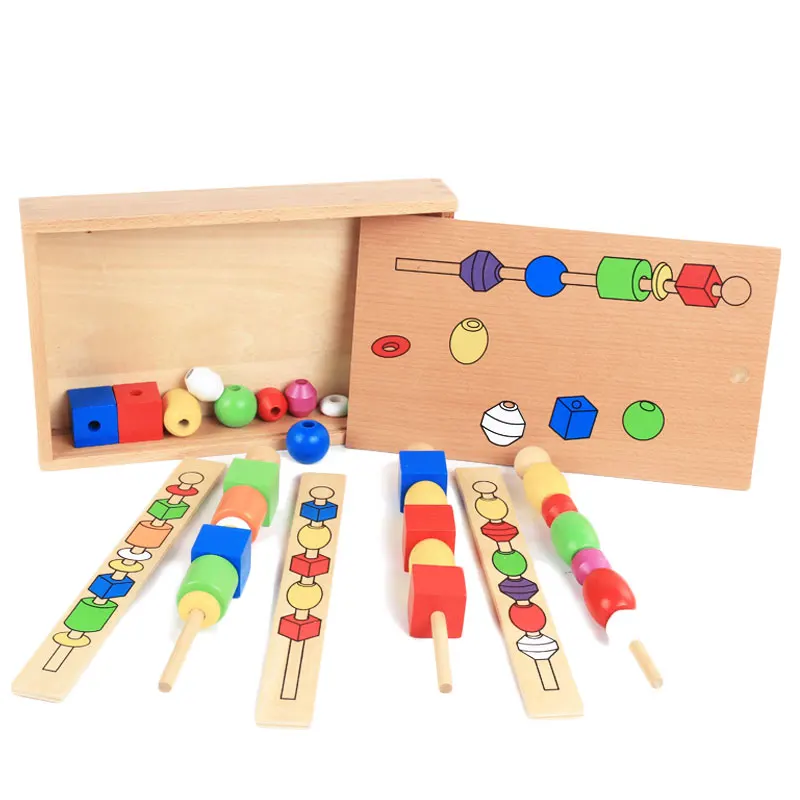 Wooden Montessori Sensory Toys Bead Sequence Box Educational Wood Baby Learning Toys For Kids Jugue