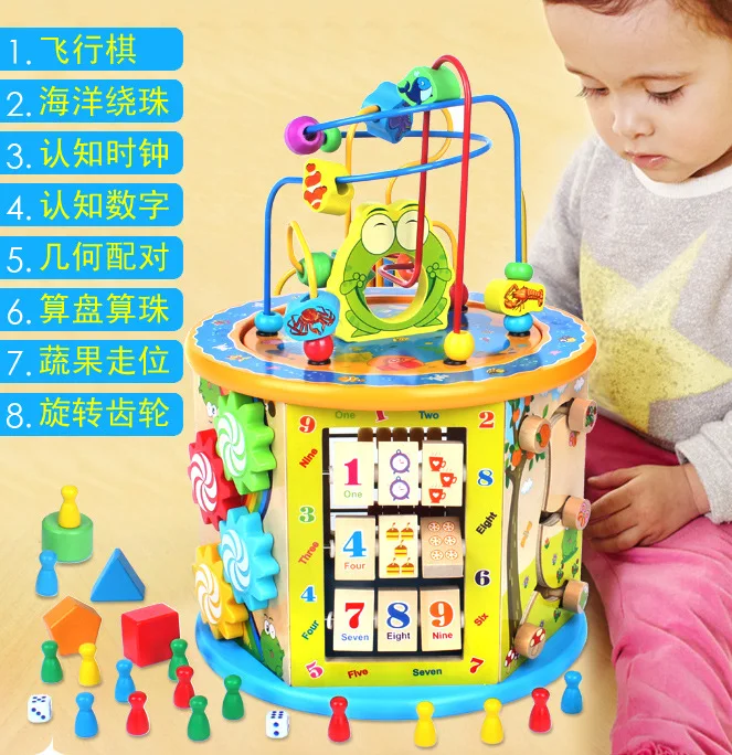 Multi-functional Hexahedral Bead-stringing Toy Treasure Chest One Year Old Baby GIRL'S And BOY'S 6-